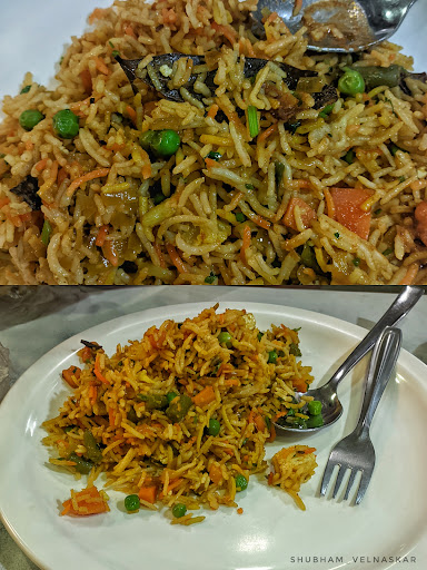 ┬а┬а┬аRead moreрдЖрдореНрд╣реА рдПрдХ рдкреНрд▓реЗрдЯ рд╡реНрд╣реЗрдЬ рдмрд┐рд░реНрдпрд╛рдгреА рдХрд┐рдВрдордд (тВ╣150/-) рдСрд░реНрдбрд░ рдХреЗрд▓реА рд╣реЛрддреА. рдмрд┐рд░реНрдпрд╛рдгреАрдЪрд╛ рднрд╛рдд рд╣рд▓рдХрд╛ рд╢рд┐рд│рд╛ рдЕрд╕рд▓реНрдпрд╛рдЪрд╛ рд╕рдВрд╢рдп рдЖрд▓рд╛ рдкрдг рдмрд┐рд░реНрдпрд╛рдгреАрдЪреА рдЪрд╡ рдЪрд╛рдВрдЧрд▓реА рд╣реЛрддреА. рдмрд┐рд░реНрдпрд╛рдгреА рдордзреАрд▓ рд╕рд░реНрд╡ рднрд╛рдЬреНрдпрд╛/рдлрд│рднрд╛рдЬреНрдпрд╛ рдлреНрд░реЗрд╢ рд╡рд╛рдЯрдд рд╣реЛрддреНрдпрд╛. рдмрд┐рд░реНрдпрд╛рдгреА рдЪреА рдХреЙрдиреНрдЯрд┐рдЯреА рджреЛрди рдорд╛рдгрд╕рд╛рдВрд╕рд╛рдареА рдкреБрд░реЗрд╢реА рд╣реЛрддреА. рд╕реЛрдмрдд рддреЛрдВрдбреА рд▓рд╛рд╡рдгреНрдпрд╛рд╕рд╛рдареА рдПрдХ рдЫреЛрдЯреА рд╡рд╛рдЯреА рдЫреЛрд▓реЗ/рдХрд╛рдмреБрд▓реА рдЪрдгрд╛ рдЪреА рднрд╛рдЬреА рдЖрдгрд┐ рд░рд╛рдпрддрд╛ рд╣реЛрддрд╛. рдЬреНрдпрд╛рдВрдирд╛ рд╡реНрд╣реЗрдЬ рдерд╛рд│реА (рдХрд┐рдВрдордд тВ╣120/-) рдЦрд╛рдпрдЪреА рдЕрд╕реЗрд▓ рддреНрдпрд╛рдВрдЪреНрдпрд╛рд╕рд╛рдареА рдПрдХ рд╕реВрдЪрдирд╛ рдХреА - рд╡реНрд╣реЗрдЬ рдерд╛рд│реА рдлрдХреНрдд рджреБрдкрд╛рд░реА 12 рддреЗ рд╕рдВрдзреНрдпрд╛рдХрд╛рд│реА 4 рдордзреНрдпреЗрдЪ рдЙрдкрд▓рдмреНрдз рдЖрд╣реЗ. рд╡реНрд╣реЗрдЬ рдЖрдгрд┐ рдиреЙрдирд╡реНрд╣реЗрдЬ рдбрд┐рд╢реЗрд╕ рдордзреНрдпреЗ рдпреЗрдереЗ рднрд░рдкреВрд░ рд╡реНрд╣рд░рд╛рдпрдЯреА рдЙрдкрд▓рдмреНрдз рдЖрд╣реЗрдд. рддрд╕реЗрдЪ рдЪрд╛рдпрдиреАрдЬ рдбрд┐рд╢реЗрд╕ рд╣реА рдЙрдкрд▓рдмреНрдз рдЖрд╣реЗрдд. рд╣рд╛рдд рдзреБрдгреНрдпрд╛рд╕рд╛рдареА рд╡реЙрд╢ рдмреЗрд╕рд┐рди рдЖрдгрд┐ рд╣реЕрдиреНрдб рд╡реЙрд╢ рдЙрдкрд▓рдмреНрдз рдЖрд╣реЗ. рдЦрд┐рдбрдХреА рдЙрдШрдбреА рдЕрд╕рд▓реНрдпрд╛рдиреЗ рдЖрддрдордзреАрд▓ рд╢реЗрдл рдЖрдгрд┐ рдХрд╛рдордЧрд╛рд░ рдЬреЗрд╡рдг рдХрд╕реЗ рдмрдирд╡рдд рдЖрд╣реЗрдд рд╣реЗ рдЖрдкрд▓реНрдпрд╛рд▓рд╛ рдмрдШрддрд╛ рдпреЗрддреЗ. рд╣реЙрдЯреЗрд▓рдЪреА рдПрдХрдВрджрд░реАрдд рд╕рд╛рдлрд╕рдлрд╛рдИ рдЖрдгрд┐ рд╡рд╛рддрд╛рд╡рд░рдг рдЪрд╛рдВрдЧрд▓реЗ рд╣реЛрддреЗ. рд╣реЙрдЯреЗрд▓ рдорд╛рд▓рдХрд╛рдВрдиреА рдкрджрд╛рд░реНрдерд╛рдВрдЪреНрдпрд╛ рдлреНрд░реЗрд╢рдиреЗрд╕ рдореНрд╣рдгрдЬреЗрдЪ рддрд╛рдЬреЗрдкрдгрд╛ рд╡рд░ рднрд░ рджреНрдпрд╛рд╡рд╛ рд╣реА...