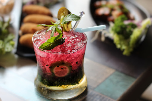 BLACK BERRY CAIPIROSHKA Blackberries Well muddled blended well with , lime mint , black currant juice refreshing in every sip of the mocktail