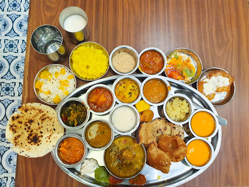 Thali includes Dhokla: Soft and juciy much on sweeter side Kachori: crispy outside and filled with lots of masal inside which included with different chutneys such as lasson chutney, pudina chutney Vegetables They serve total 4 vegetable dish (1) curd brinjal- sweet & sour in taste but authentic flavoured comes out of the dish (2)panner bhaji- Tender pieces of panner with creamy panner gravy (3)Rajma bhaji-Spicy yet taste with delicious rajma beans (4)Tamatar aloo bhaji- My favourite of all which has there authentic masala which gave immense falvour to overall dish Breads Methi thepla- soft theplas had with thecha(Mharashtrian thecha which mean green chillies grindy together with some fresh garlic) Corn roti- served with sweet jaggery Butter roti-Buttery roti with soft texture Dal Gujarati dal: sweet dal which was amazing in taste Dal tadka:spicy in taste accompanied with steam rice Kadi: sour & sweet at same time which was delicious in taste had with papad and pickle Tadka khichadi:Spicy tadka & much softer rice which old age people can easily have has it was too soft & taste at same time Chaat Dal baati: moong dal which was just mesmerizing in taste with crispy baatis Ragda pattis: Tender potato patty mixed with spicy,sweet chutney & some fresh ragda which is white chana but its taste was mouth watering Chass Last but not the least had this amazing chass which was sour & had coriander powder mixed with it which gave delicious...