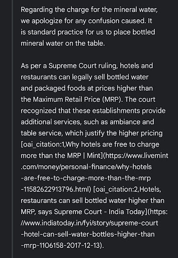 I know 85INR will not be a big deal for a person who is entering in such kind of restrurant but whatever is wrong and illegal that I am mentioning. If owner want to get such kind of amount, customer will give direclty give it to him but he should not do such kind of cheat and fraud. One day such kind of cheats become the scam and then we blame to our govt.