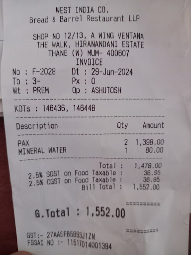 Read moreI went there for buffet lunch along with my family. The mineral water bottle of price 15 INR was kept on the table. No one informed that it is chargeble but when we paid the bill its price was 80 rupees mentioned in the bill and we paid GST on top of that. I am not commenting any bad feedback for food and service that was really nice but what I am trying to say is, a sensible person can easily understand. (NOTE1: WAITER DID NOT INFORM US THAT IT IS CHARGEBLE).