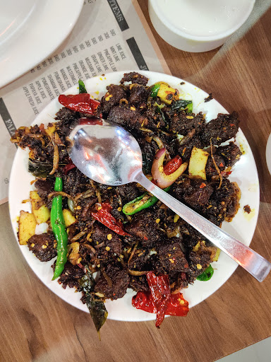 I visited Calicut Kitchen for lunch and ordered chicken alpharm Mandhi with Kottayam Achayan beef fry. I also took a chicken biryani parcel for later. The restaurant is located in a convenient spot with ample car parking space. The ambiance is cozy and inviting, with comfortable seating and calm atmosphere.