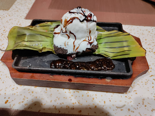 Hot browni ice cream :- Cost 180Rs Description:- One cup of ice cream placed on top of Square of brownie. No hot as named.