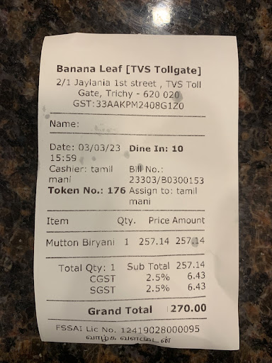 Read moreWe recently visited Banana Leaf Restaurant around 3:30 PM, just before closing time, and found limited food options available. Despite this, the supervisor who took our order did his best to accommodate us with the available dishes. We ordered a set of parota, mushroom fried rice, and gobi manchurian. Unfortunately, the taste was severely disappointing and did not meet the standards of a typical restaurant meal. Adding to the frustration, when the parota was served without gravy, it took the lady server over 10 minutes to bring it to us, even after multiple reminders from both myself and the supervisor.