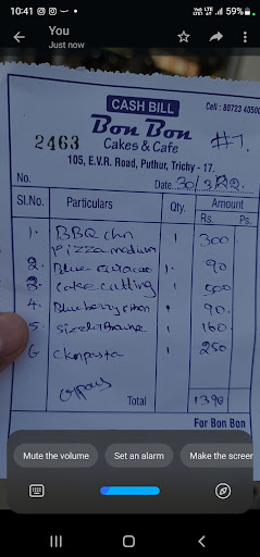Ā Ā Ā Read moreI've been a customer for too long But no one informed me about cake cutting charges .there is no notice board or no one informed me till I cut my cake. [They have charged me 500 for cutting charges for 200rs cake ]. I didn't expect this from bon bon on my bday. Till now I suggest I like to have cakes in bonbon .but friends bought in urgent. I would have cut my cake on other place if they told. This literally made me bad opinion...