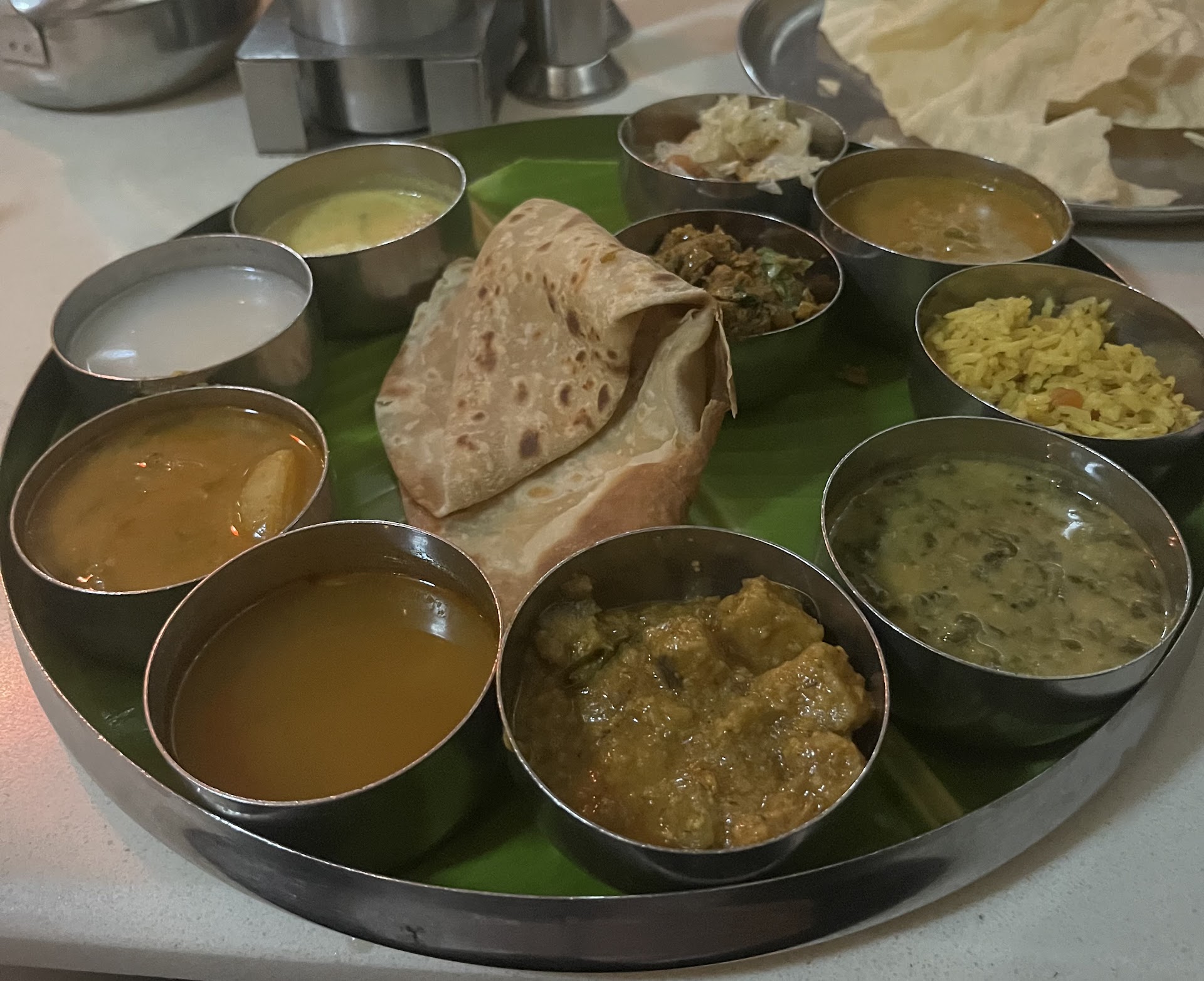 Unlimited food supply. Rice : unlimited + Good. Sambar & Rasam : Taste wise changes on every day. Side Dish. : Kuttu+puriyal+Aviyal+Appalam+Pickle😋 Serve :Banana leaf on traditional +glass Water.