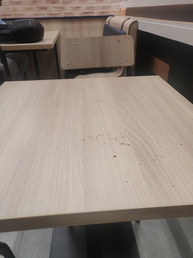 Dining area looks like garbage. No staff to clean and it remains there on table top smelly and messy. Customers have to clean it.