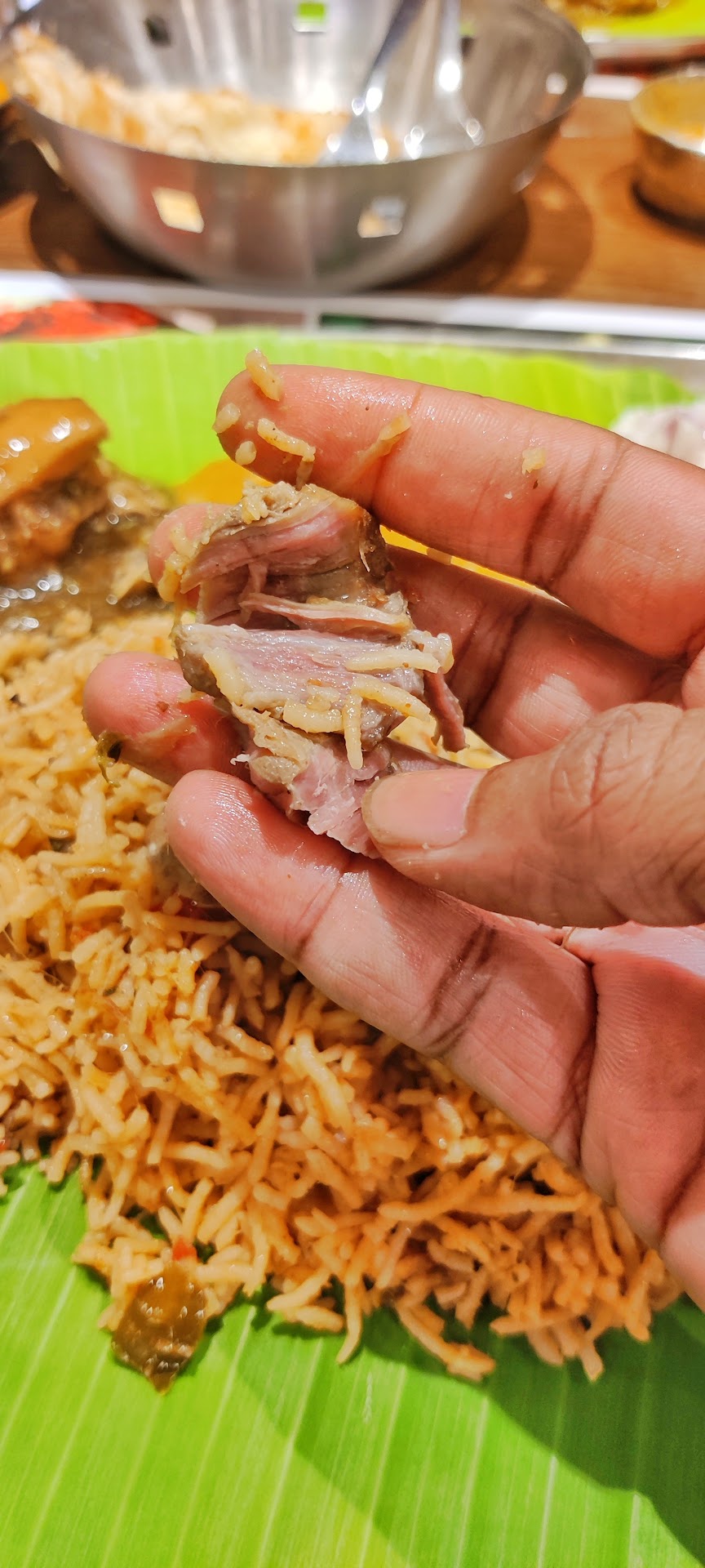 Nandhana Palace, OMR This place was in my bucket list from the day of its launch. Read a lot about this place and i was very curious to visit the place some how as it is completely located to the next end of Chennai. 🚶 . Nandhana palace a Bangalore based Andhra restaurant. Located in Siruseri , OMR had a chance to visit them today . The ambiance was good and they way the staff greets you will be a shocker but ..... will come to this later . The menu card is setup like a small plastic laminated board on each table. Going through the menu was surprised with the pricing of tandoori full (550 INR) 🥲 but... the other dish prices where kinda okaish for a multi cuisine restaurant. . Our Orders: 💥Mutton Biriyani ( Regular) (315 INR): Was good ( I mean just good). A kinda nellore style biriyani ( few weeks before had it from nellore riyaz pot Biriyani) . The biriyani was mild flavourful and coming to the pieces they nailed it 🔥. Well cooked super soft and tender pieces ( You fan see it in the pic ). Served with Raitha ( Mixed of Onion Cucumber 🤦🏻‍♂️) and a salna kinda one ( was poor) .Mirchi Ka Salan Enga Daw? Moment 🥲. Sadly Again No EGG for the biriyani 🥲💔. The portions here was good for a normal heavy eater. . 💥Parota Chicken Curry Combo ( 240 INR): Parota was super soft and fluffy. The gravy was also good had the slightest South indian touch and had 2 pieces of chicken. . 💥Andhra Chilli Chicken (270 INR): Was good a typical andhra style green chill based chilli chicken which had the mild and hot flavour to it. The pieces here where also super soft and tender . 💥Mutton Bone Soup (130 INR):Was good. A typical mutton stock water with some oil spiced . Had a piece which was also good with the flavours . 💥Elaneer Payasam (135 INR):Was good but expected a more thicker version of it. Till now Ente Keralam Served the best Elaneer Payasam 🔥 . The way the staff welcomed was good as i mentioned before but the way the cared made a mixed feeling ( Konjam over ah dhan care pandrangalo) kinda mind set. Initially asked hit water and few minutes came with a rusted Tumbler with hit water immediately asked them to replace and they did asap.And when serving it was like quick but... The way the come and take the utensil asap ( like for parota bowl , and biriyani bowl evem your plate made me like meh...) Service is good but these kinda work cant be tolerated by some as they all want a peaceful dine in experience rather than make a mindset to the customer ( Kelambu Kelambu) . Overall a okaish place Not that value for the hype created. Still lacked that Andhra Cuisine punch. I have had Meghana biriyani in Bangalore and it was like WoW... . Sambhavam Thodarum 😎💥🔥