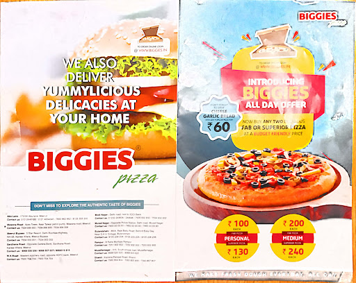 The star of the show at Biggies Pizza is undoubtedly their unique burger-pizza creations. These delectable concoctions combine the best of both worlds, with juicy burger patties and savory toppings generously layered atop a crispy pizza crust. It's a culinary adventure that's both innovative and satisfying, making it a must-try for food enthusiasts.