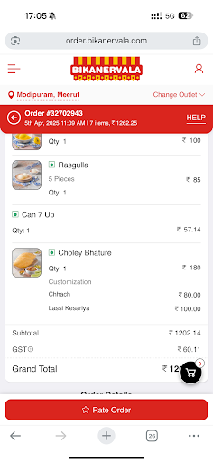 As for the food, Bikanerwal maintains a wide menu, covering traditional North Indian dishes, snacks, sweets, and fast food items. Their thalis are popular, offering a wholesome meal with good variety and taste. Chole bhature, rajma chawal, and dal makhni are worth trying if you want comfort food. For snacks, the golgappas and chaats are fresh and flavorful. The sweet section, especially rasgulla, gulab jamun, and kaju katli, reflects the typical Bikanerwal quality—rich, fresh, and authentic.