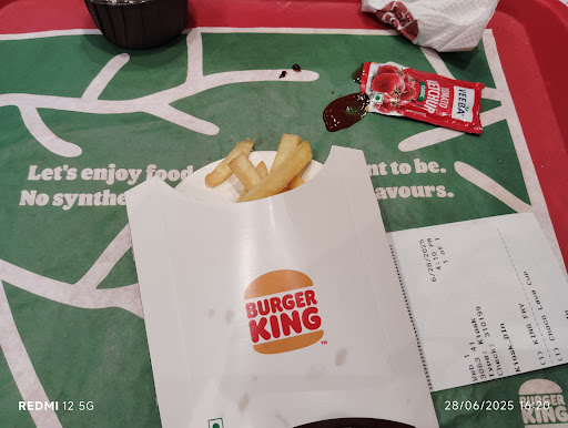 We ordered Boss Whopper burgers along with caramel frappe shake and a thick chocolate shake with peri peri fries, since cheezy fries weren't available either! Didn't give us a spoon, tissue or ketchup with the order. Had to go and ask.