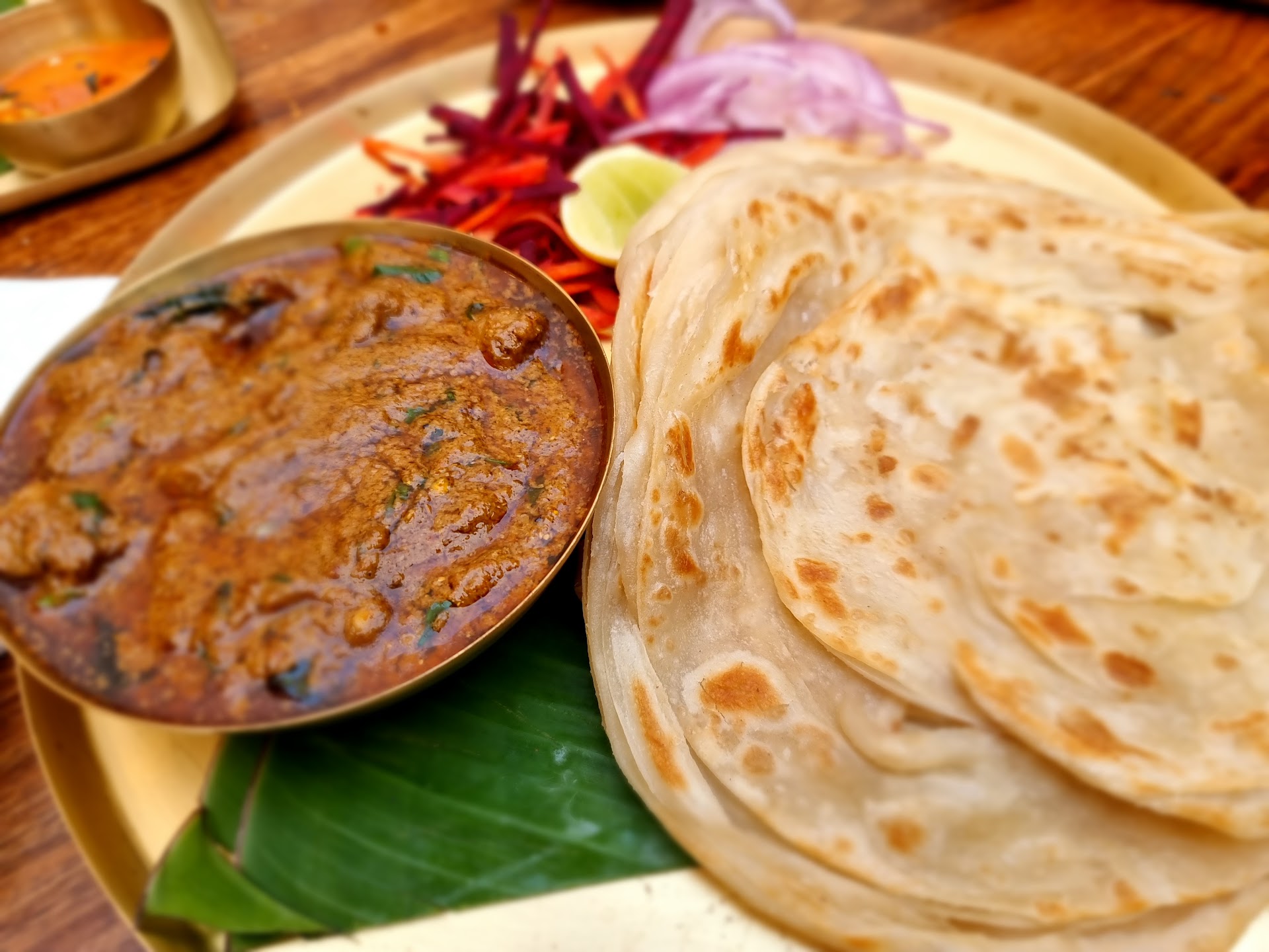 Chettinadu Mushroom Curry with Parota: The combination is very good and a proper meal in which you get 2 Parotas, Mushroom Curry with South Indian Flavours and some salad. I feel Mushroom Curry should be more power packed.
