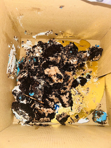 Now, coming to the point, what I received was in a pathetic and unhygienic manner, clearly it is visible they have eaten the cake or just thrown it somewhere and after my reminder call, they have managed to put it back in some strange box and top of that, they pasted it with newspaper, I mean who does that!! They didnāt even handover it with basic packaging.