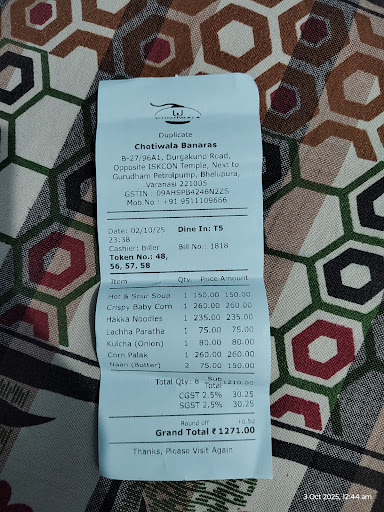 Chotiwala Banaras (Pure Vegetarian)Iskcon Temple, Durgakund Rd, Gurudham, Anandbagh, Bhelupur, Varanasi, Uttar Pradesh 221001, India