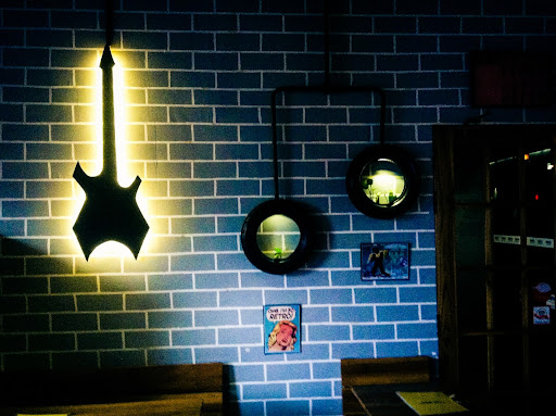 But the drinks are just one part of the equation. The atmosphere at [Cafe name] is simply delightful. The decor is stylish and cozy, with small and interesting items and pop culture's hit movie and songs posters. The natural lighting and neon color scheme make the space feel soothing and relaxing, and the rock and metal background music adds just the right touch of ambiance.