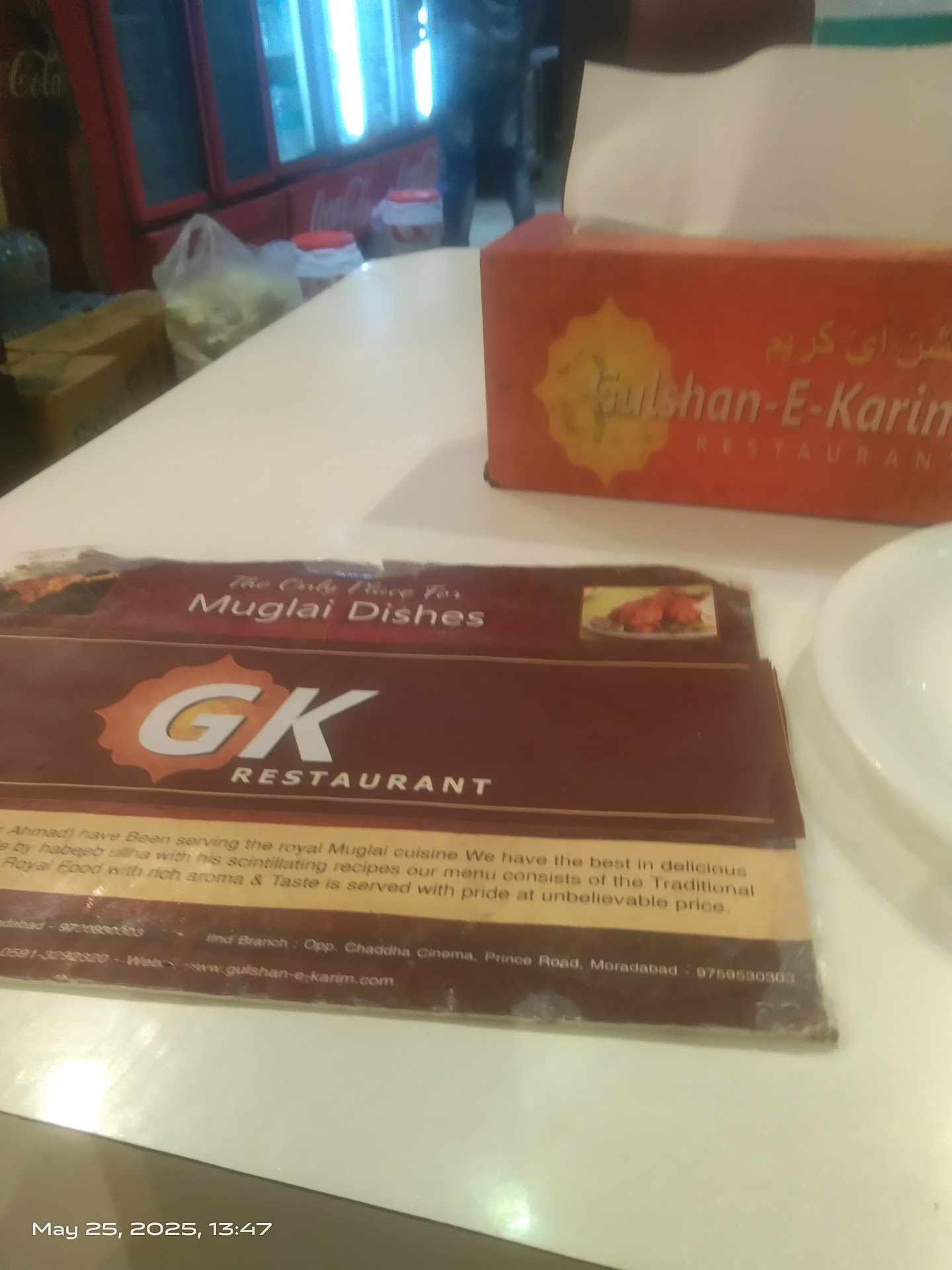 Read moreI have been to this place many times.Actually this has been one stop for our family non veg food. The restaurants offers dine in as well as online ordering via zomato. The food price is less a compared to karims Delhi which i found super expensive. I enjoyed the famous chicken changezi and chicken Kali mirch with tandoori as well as rumali roti. The restaurant is located at the indra chauk Moradabad. This restaurant is the heaven for nonveg lovers and they have a...