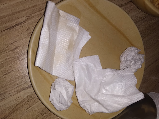 Most Unhygienic place to eat good food. No doubt the food is good but the plates in which they serve u stinks and are already very oily as if they don't wash it, instead just wipe it with dry cloth. Found out this while wiping it with tissue as shown in the attached photo. I told the waiter about it so his reply was shocking, he said "Tissue se wipe karlo"( means wipe it with tissue). Dey have two floors we were sitting on the 1st floor and ordered Paneer Masala with Naan and chicken Biryani then we decided to order chicken roll but the manager denied that he can't bring it here. When we are sitting on table and having food going down by ourself and bring the food from down doesn't make sense and he straight...