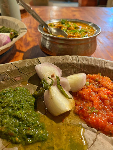 "Baati Chokha introduces a fresh approach that reconnects you with traditional cuisine. The restaurant boasts a thoughtfully designed ambiance that echoes tradition, where food is presented on large leaves. With an array of Baati variations and generous servings of ghee accompanied by a diverse selection of chutneys, the taste and service are commendable.