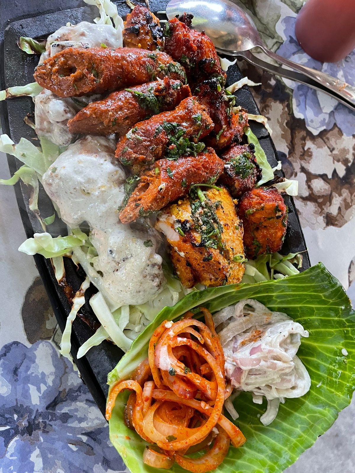 The burger, though fresh, lacked a certain zing and flavor to it. The fries served with it did not seem fresh and were quite hard to chew. The quantity of the platter was great but neither of the four items of the platter had any flavor. Both sort of chicken were over-cooked and difficult to chew. The mutton seekh though looked great but again was over cooked and had a pungent smell to it too. The fish was nicely cooked and looked great but again, it was lacking the flavor on the inside and seemed bland while chewing.