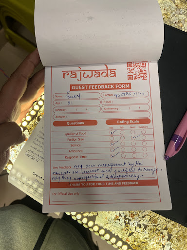 Read moreThe quality of food is very bad and the service of staff is also not expected this is first time I visit in this restaurant Rajwada and also this is my last time in my entire life I never visit again in this restaurant the quality of food is very cheap not taste in the food very bad quality I am very disappointed from this restaurant local dhaba food is more better than food in this...