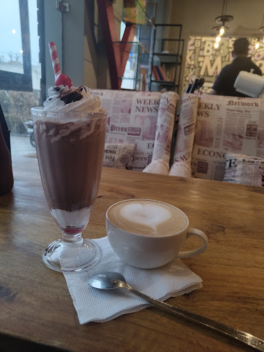 ย ย ย Read moreOne of the best place in Mathura for chocolate lovers. Yes, they have so many chocolaty dishes on the menu. If you are a Chocophile then you must visit it. The staff is very cordial. Interiors are super๐. And if you are in mood to get high on chocolate then let me tell you they have hot chocolate shots on the menu at just Rs.49/shot. But please don't ever try 'The White Lady' ( its a white hot chocolate shot which I personally don't like at all). Mocktails are also there to refresh you. One of the best thing I liked here is the seats with newspaper type covering on them and an antique retro styled kettle for water. This place is easily visible from the main road and they have a spacious...