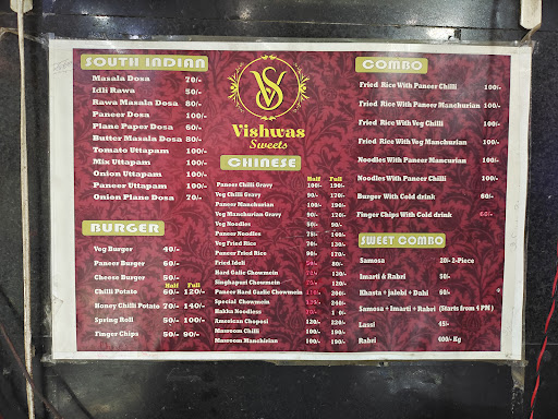Read moreI had a delightful experience dining at Vishwas Sweets. While the prices may be slightly higher, the taste and quality of the food, as well as their commitment to sanitation, make it worth every penny. The extensive menu offers a wide range of dishes, including delectable sweets and satisfying fast food options. It's a culinary haven for those who appreciate both flavor and hygiene. Indeed, the staff at Vishwas Restaurant are exceptional. Their friendly and attentive service adds to the overall...