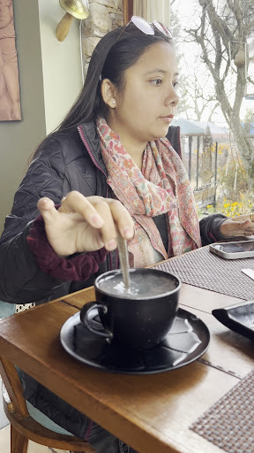 The cafe has a cozy and comfortable seating area, both indoor and outdoor. The outdoor seating area provides a beautiful view of the surrounding mountains. The ambiance of the cafe is warm and welcoming, with friendly staff who are always ready to help.