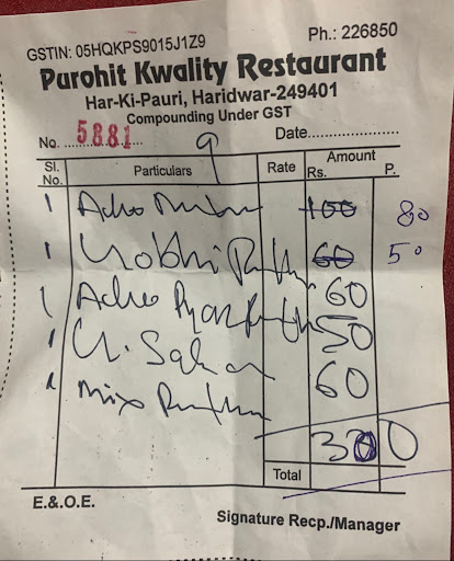 Read morePlease tally ur bill amount with menu I had some food there and was suprised when Wrong amount was billed for aloo matar and gobhi paratha and when i asked the waiter then he said "correct karata hu". This is the one coincidence that I checked the bill and tally the amount with menu, got to know this fraud otherwise plenty of people eat the food there and ended up paying extra amount every time.
