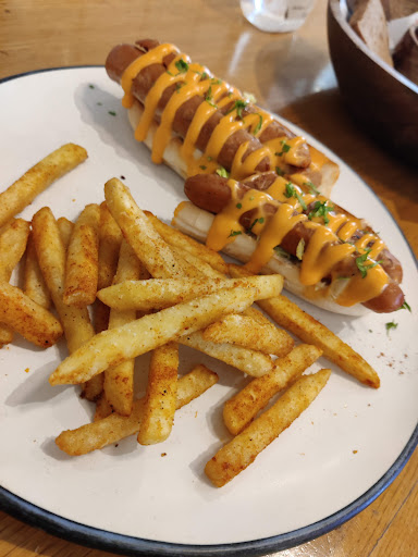The menu covers a wide range of Western style dishes, such as grills, sandwiches, pizzas, burgers, salads, and an extensive breakfast menu (they serve breakfast too, from 8 am onwards). There is also a full bar (and they do a range of smoothies, shakes and so on as well). We ordered two hot dogs - classic pork (chicken is available too) and shrimp, egg and avocado, plus a tenderloin steak. All three dishes tasted good and were a fair portion size. The complimentary bread basket had a good assortment of breads as well as bread sticks, and a nice herby butter to go with them. Service was adequate.