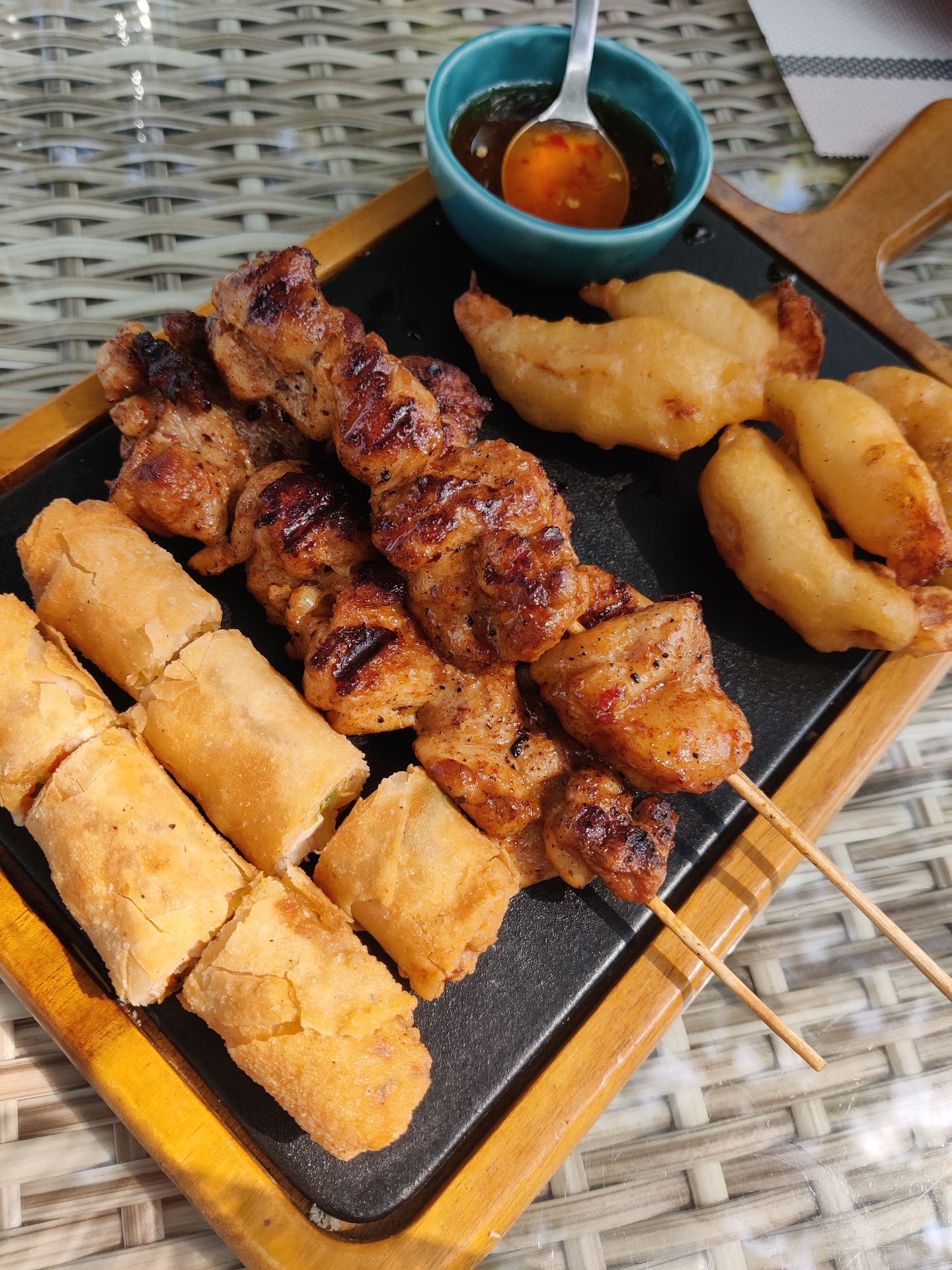 The Kosi Deck is the river-front restaurant of Riverview Retreat. It sits on a wide terrace, below flowering trees, overlooking the Kosi river. It's very scenic, and the cane furniture is stylish.
