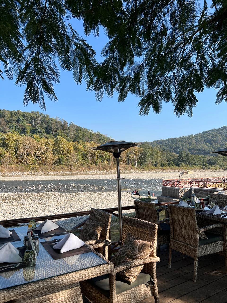Read moreThis is a small deck cafe in Riverview Retreat Resort, Dhikuli. If you are staying in the hotel, finding a table here isn't a problem but if you are just visiting the cafe please book it in advance. This place will blow your mind, its beautiful. We had gone there around 7pm and we loved the vibe. The view is overlooking the forest and the Kosi river flowing through. Its so serene. Such a breathtaking view. They had such soothing music playing in the background which was just adding so much to the whole experience. The food was well prepared and tasty. This place is worth the money. Please visit this place and it will be the highlight of your trip. Kudos to the management and the staff of Riverview Retreat...