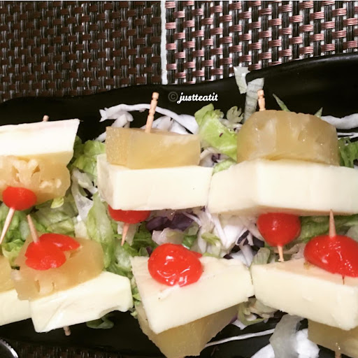 Cheese Cherry Pineapple Sticks!! I would dedicate this dish to my London return friend who really wanted to take a big bite on cheese π§. Though itβs simple to oneβs eyes you'll thoroughly enjoy its every stick. The combination of three ingredients i.e. π π and π§ is amazing. A kick-off dish to start your party. ..
