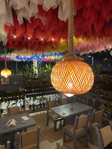 The upstairs part is different, though unlike down, which has ac, this part is open with greenery, potted plants hanging on a major side covering a whole part. Air coolers, mora chairs, dark with less lighting, the light sources came from hanging lamps and rice lights. The look was fun and colorful. While preference was to sit upstairs because of the ambience and decor there were mosquitoes which forced us to go downstairs. I hope this problem could be taken care of during night time. Cant say how it is during the day.