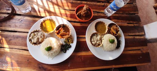 Food :- we ordered 2 veg thali, onw chicken kasha and an omelette. And water bottles. Total was 470. Veg thali -ghee , lemon, chilly, rice begun bhaja, dal, one seasonal sabji, alu posto, chatni, papad, misti.