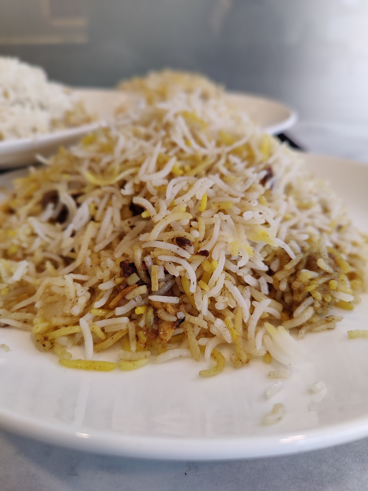 Rice texture: Biryani rice should be long-grained, fluffy, and cooked to perfection. The grains should be separate and not mushy. The rice should also absorb the flavors of the spices and meat, adding to the overall taste.