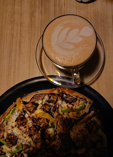 The cafe is beautifully designed with tasteful interiors, creating a cozy and welcoming atmosphere. The walls are adorned with artwork, vintage photographs, and quirky decor, adding to its charm. Comfortable seating arrangements and soft lighting further enhance the relaxed and inviting ambiance.