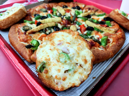 Pizza Hut at the domestic airport is clubbed with other well known fast food chains. Seating is common, so you can have your pick of eateries.