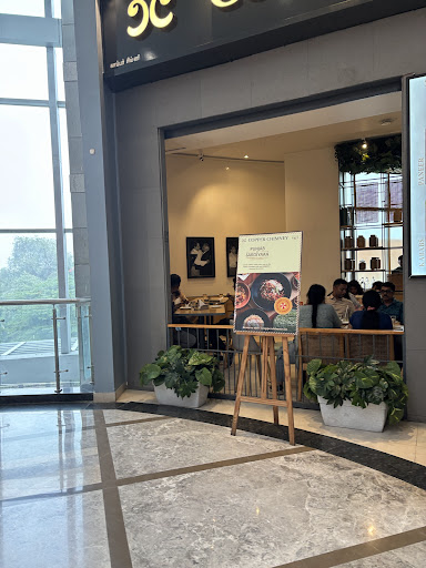 Ambience (4/5) It has a modern set up with lots of tainted glass and a few chandeliers. It's definitely gives a very OPEN VIBE and is relaxing They have a show kitchen visible through a window where one can walk over and see them prepare some of the food. Good amount of Natural light is also a big plus. Floor and tables were not very clean which was an eye sore considering the efforts put in its design. There are NO WASHROOMS in the restaurant and you are encouraged to go the mall washrooms on level down if needed. This is a huge inconvenience.