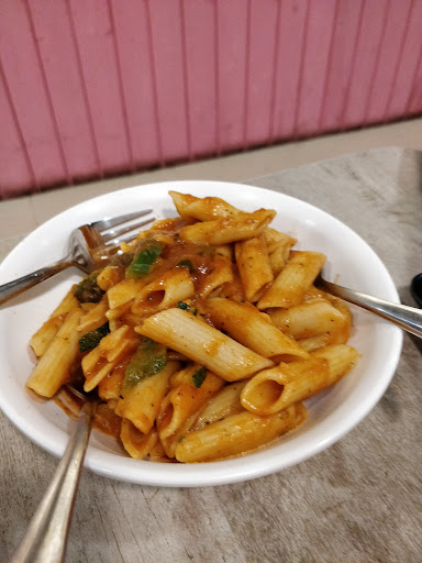 Roasted Bell Pepper Pasta - was very nicely done and again, the sauce was finger-licking good. While this doesn't come with garlic bread, Ms. Varsha was kind enough to make us three wonderful garlic breads that was super crunchy delicious.