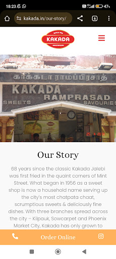 Read moreIt started as a small sweet shop in the Mint area famous for the jalebis. In those years you had to go to the area around Parry's corner, Sowcarpet NSC Bose road to taste authentic North Indian food as those areas were populated with people from various parts of India as it is situated near the Central Railway Station. The Kakada shop was opened in 1956 ( as per info) and it has steadfastly grown into a recognised name. They're from Rajasthan ( as informed) and the taste of the dishes also reflects that. They have a variety of sweets including ghewar which is a traditional rajasthani sweet. I only had their Pani puri with 3 different flavours. I just couldn't stop eyeing for more. They have a live jalebi counter also. They have 2 branches - Mint street and Ormes Road and also a small kiosk in Pheonix Market City, Velachery. You can also order through Swiggy. They also undertake catering. The price is good and so is the taste. Overall an enjoyable moments of original Rajasthani flavours (The photos includes their original shop front...