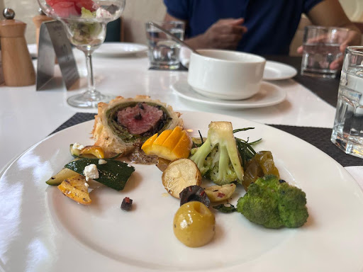 We had some mocktails too—one with orange and something else I can’t quite remember. Later, I requested another one and got a mango-based drink instead. Refreshing overall, though I did wish they’d served the same one again.