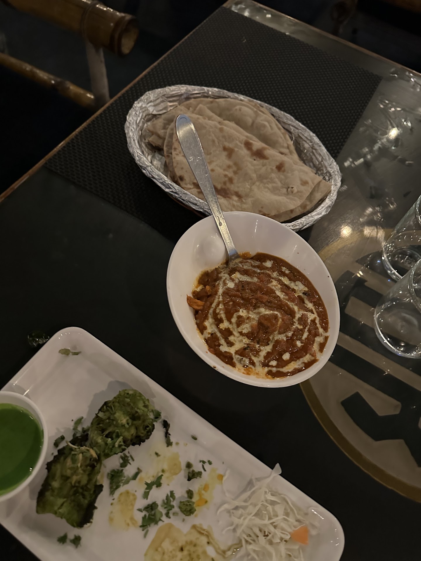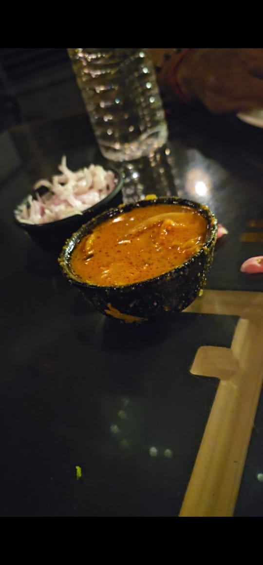 Coming to the food: I checked with the server about the options who was very slow in recommending and taking orders. I specially wanted to order some dishes which were not spicy since i had my kid with me. He suggested 20-20Chicken and Buffalo Chicken wings. I ordered mutton rasam, Amritsari chicken, Butter chicken masala and Tandoori rotis. To my horror, 20-20 chicken was spicy which was sprinkled with burnt chillies. My kid refused to eat. The buffalo wings were not even cooked(attaching a pic of it). On complaint, the server replaced it with a cooked one. The amritsari chicken was bland and not cooked to the fullest. The mutton rasam was ok. The butter chicken was okayish and roti were good.