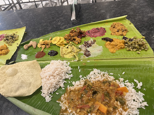 As for the food, it didn’t live up to the expectations. While the vegetable curries were decent, the rest of the meal lacked flavor and authenticity. There were two payasams served, and both were quite bad. The jackfruit payasam tasted watered down rather than made with milk, and the white payasam and boli, which are usually staples, were missing altogether.