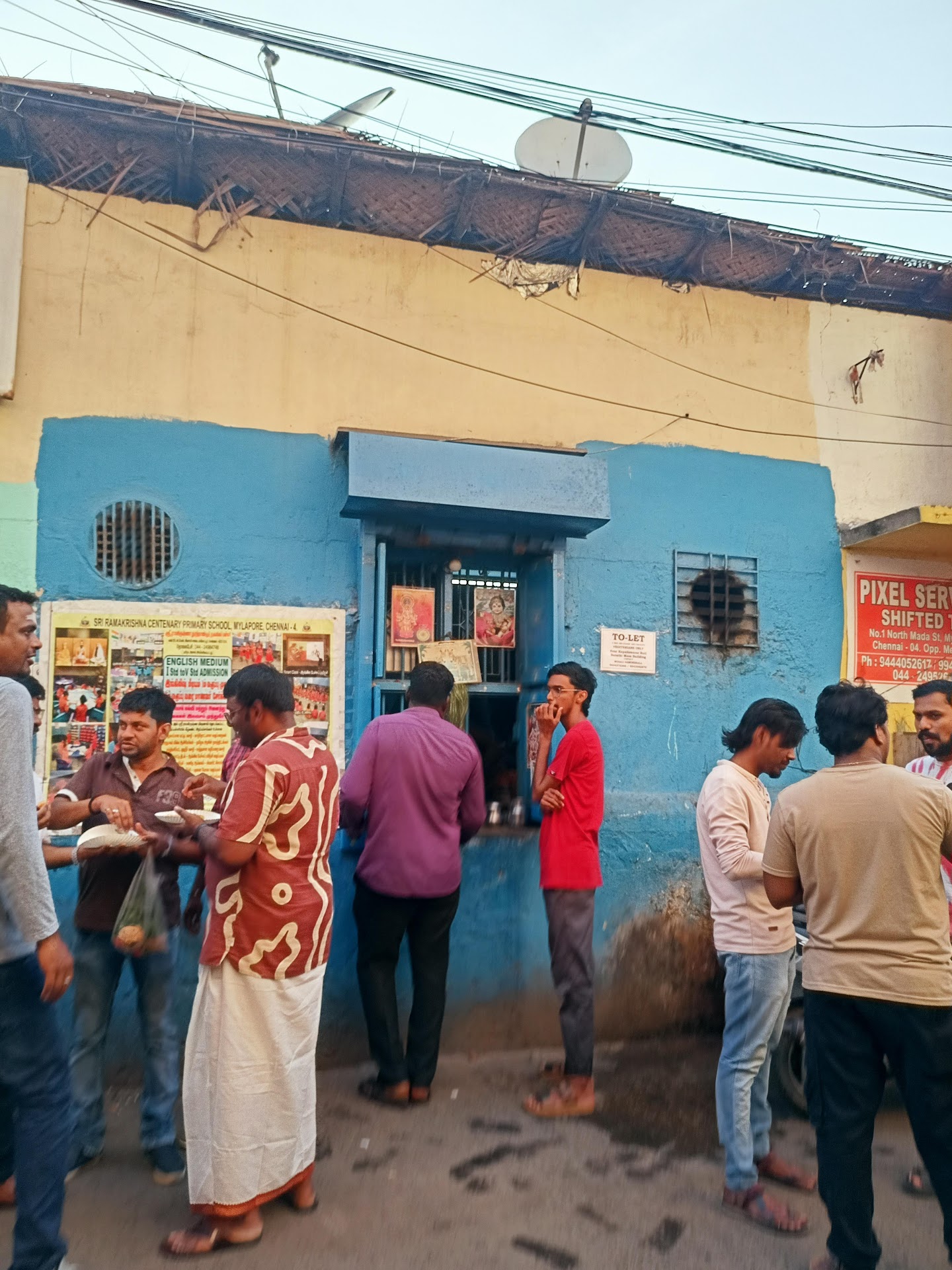 How much business they do in a day, how many customers they get in a day and how much they earn in a day, God only knows...due to youtubers and instagram influencers, yet still they make customers stand outside their jannal (window) in heavy traffic and severe air and noise pollution...no chairs...no fans...no rent....no expense...nothing.....their bread bajjis and milagai bajjis soaked in smoke from vehicles ...where do you keep all the money you jannal shop owner..., do you even pay your taxes like us ????? There are definitely much better shops who treat customers like they are meant to be treated....yet another over hyped shop in Mylapore..... avoid please