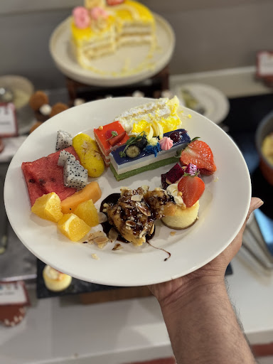 Desserts of course are plentiful. But the hotels have got smart with keeping small pieces of cake or set in small cups, so that people don't make a mess while serving themselves.