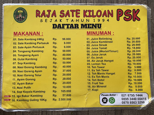 Selain sate, menu lainnya juga tidak kalah menggoda, dan semuanya disajikan dengan harga yang sangat terjangkau untuk kualitas yang diberikan. Ini jelas menjadi salah satu pilihan makan yang tepat jika Anda mencari tempat makan yang bisa menampung banyak orang dengan hidangan yang enak dan memuaskan.