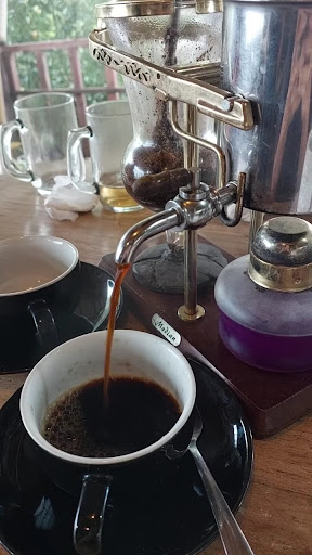 Read moreVeritable Eco Café coopératif ! Sucursal de l'eco café 1 prêt de la splendide cascade de golden valley. Attention, au 4 juillet 2018 ils sont encore en travaux sur le 1 pendant quelque jour. Profitant de la reconstruction du 1er, une autre famille de l'île en a profiter pour usurper le nom et nous nous sommes fait avoir. J'ai discuté longuement avec Mr. Nyoman Budi, l'initiateur et fondateur du projet. Après être passé par la casade dans l'après midi à golden valley et ayant mangé au eco café 1 ( le faux) car le vrai eco café 1 est en rénovation, je suis allé voir le 2. Et c'est la où j'ai pu constater par moi même la différence. Mr Budi sait bien de quoi il parle alors que les autres ne parlaient pas anglais et visiblement était gêné que je pose des questions sur la coopérative. Car nous avons découvert que les produits de l'usurpateur ne sont pas vraiment certifiés bio mais qu'en plus les animaux sont en cage et donc leur publicité reprise du vrai eco café concernant le café luwak issue de mangouste sauvage est faux. Cet usurpateur n'est certes pas mauvais mais rien comparer à ce que vous allez déguster ici dans l'éco café 2 ou le veritable numero 1 à la casacade. Voilà j'insiste pour être très clair, car ce que font Mr. Budi, les fermier locaux et les étudiants est un véritable chantier pour la préservation de la culture, des richesses et de la terre ici à Munduk. Bénéficiant d'une eau pure étant situé sur les hauteurs de Munduk en amont des autres village et bénéficie de soles fertiles qui n'ont jamais vu un pesticide ou fertilisant, ici c'est du bio local certifié. La cuisine respect les valeurs ancestrale tout en étant innovante. C'est un régale pour les yeux et les papilles. Les grains de café luwak est en effet ramassé dans la nature après avoir été digéré par les mangouste bien sauvage. Il y a d'ailleurs des journées où les élèves des écoles des environs viennent participer à la récolte en forêt et tout le monde peut s'y joindre. Vous verrez donc par vous même comment se fait un des meilleurs café de cette planète. Puis il est servi dans la machine que je poste en photo et c'est une manière d'être certain que c'est le vrai café quand vous êtes servi avec cette machine. Bref je n'ai pas eu le temps de discuter plus du processus au vu de tous les projets dont nous avons parlé et dans lesquelles la coopérative prend part. Je vous conseil juste d'aller dans un des deux en comptant que le Mi goreng est à 45 000 roupies, c'est un petit plus que les locaux à 30 ou 35 mais c'est aussi un manière de bien sentir les vrais legumes issu de la terre, donner de l'argent pour les paysans, les étudiants, l'île et les personnes engagés dans ces projets qui se défendent contre la pollution de leur île. En clair vous faite une bonne action pour l'île en venant ici en même temps que pour votre ventre. C'est la première fois que je mets un commentaire sur quelque chose et là c'est mérité. Je supporte ce projet et je vous invite à faire de même après avoir...