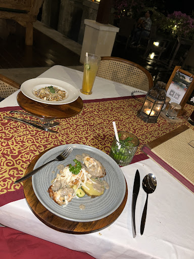 As soon as I sat down the server, Ina, grabbed my chair and helped my seat while waiting patiently to place the lovely cloth napkin provided on my lap (which was great quality). There was live music which was a delightful surprise as well. My drink was super refreshing, and what was more refreshing was that they offered a great non-alcoholic selection. I give the virgin Mojito a solid (4/5 Stars). The appetizer âChicken Pandanâ, was presented beautifully with a tasty sauce. The chicken was well done as well if you like that style (3.8/5 Stars). The main course was my favourite, âMelted Cheese Chicken (MC2)â. It was so tasty and it had so many elements, colours, and was cheesy and creamy (4.5/5 stars). To top it all off, the desert (Chocolate Lava Cake W Ice cream) was an explosion of chocolatey goodness and the photo speaks for itself even without the middle ooey gooey centre exposed yet. Overall I am really happy with the service of everything and the vibe here is really cozy and beautiful. Probably the most beautiful restaurant I went to in Bali! Happy my husband and I came here for the last night of our one year...