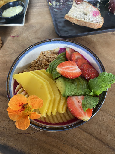 I had the Super Breakfast for 65,000 Rupiah avocado š„ with toasted sourdough eggs any way you want them tons of guacamole and really tastefully done arugula salad and I went with tempeh ( best I have had so far in Bali ) instead of chicken very filling and well presented.