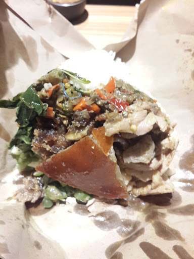 The meat was tender and delicious, the crackling crispy, and the accoutrements plentiful. Free bags of extra crackling were piled high on every table, which we promptly tucked in to.